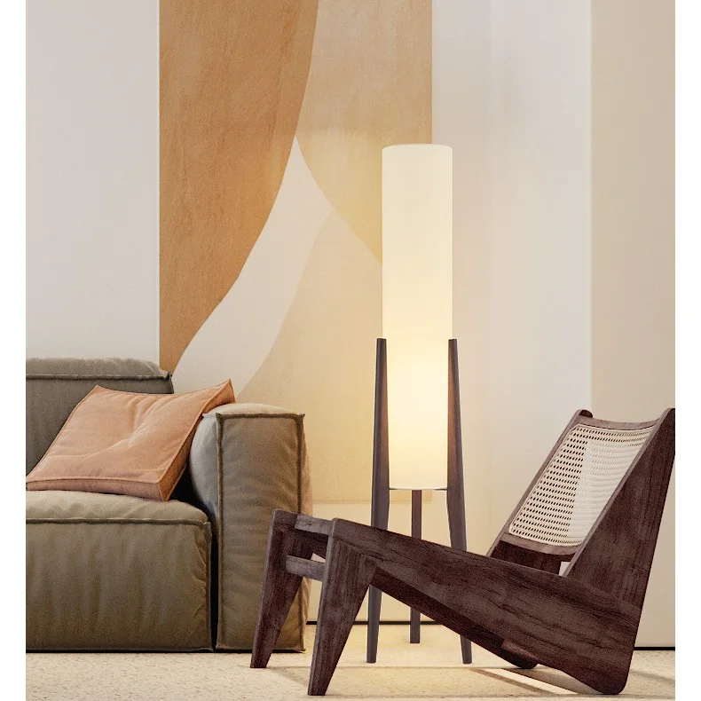 Candeeiro de chan de madeira sólida coa base de pano, decorativo para sala de estar, escritorio, teahouse, estilo medieval para residencias