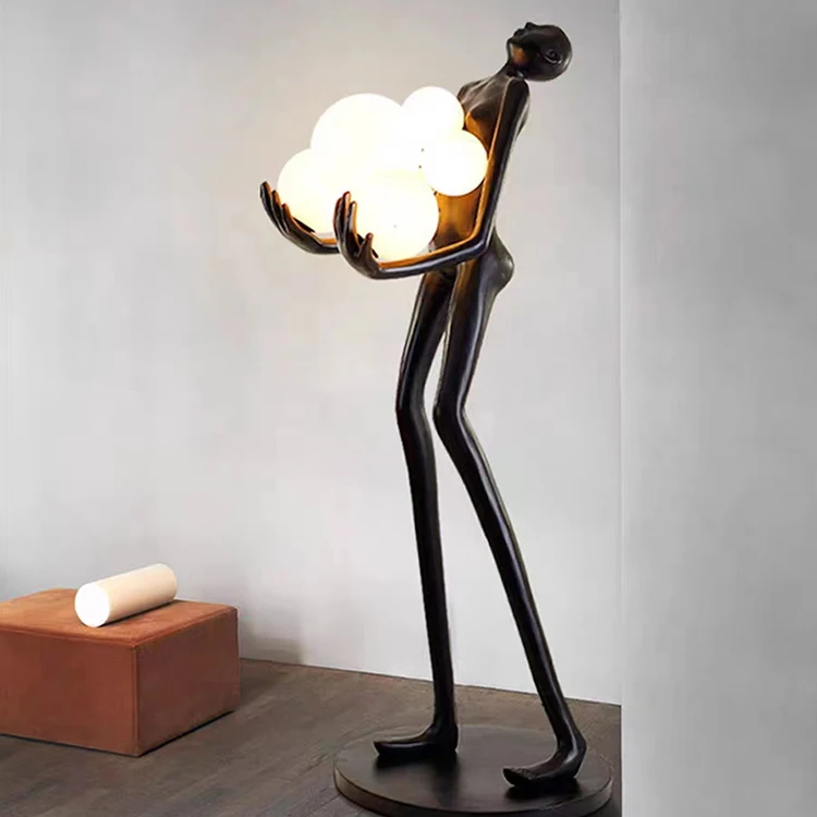 Large Abstract Fiberglass Human Sculpture Floor Lamp Courtyard Hotel Decoration Lady Crafts Resin Floor Lamps Sculpture