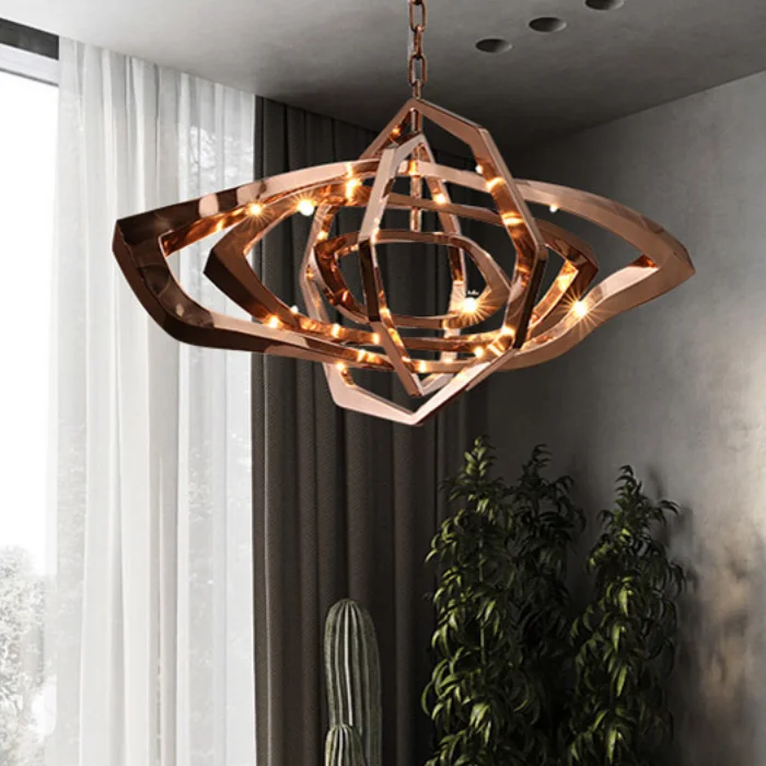 Restaurant Art Rose Gold Pendant Light Decorative Bar Atmosphere Hotel Villa Dining Room Steel Metal Chandelier