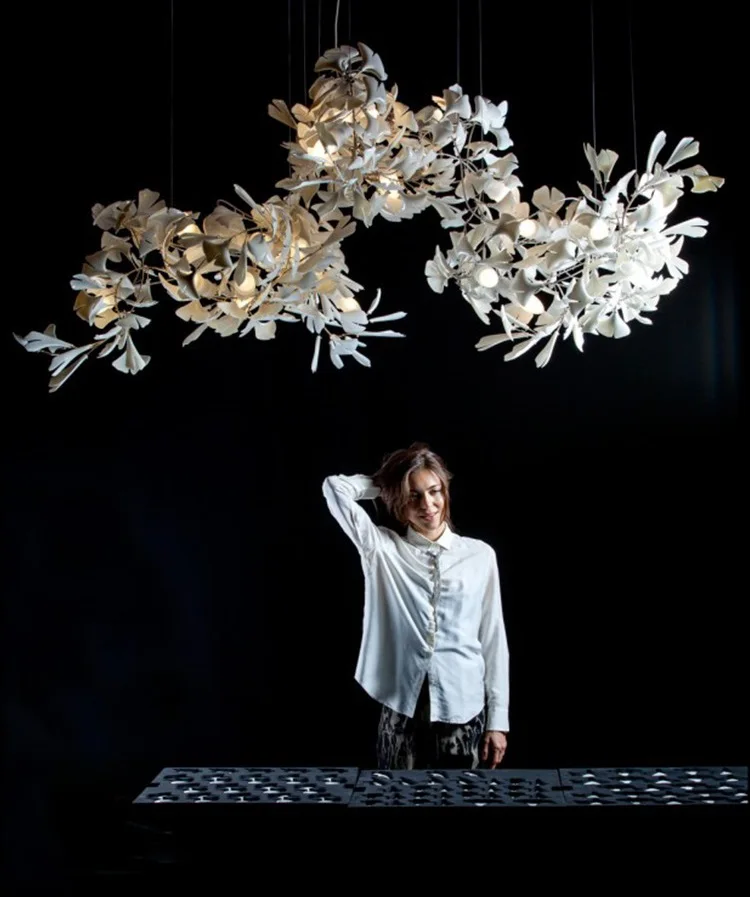 Simple Decoration Villa Hotel Living Room Ginkgo Brass Pendant Light Restaurant Lobby Bar Room Ginkgo Leaf Chandelier